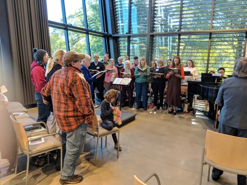 In our nursery, you’ll find that we have the service streaming on a monitor for young children (0-3) and their caregivers who may be more comfortable in that setting. There is also a speaker in our RE Commons for families who would be more comfortable participating in service from that space.