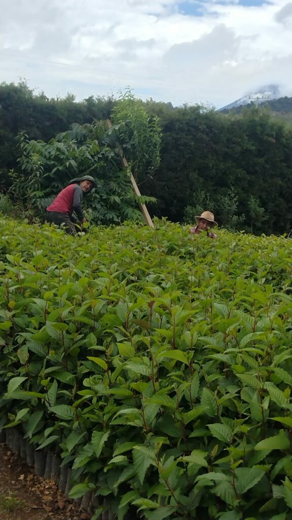 The pinabete tree produces seeds only every 2 or 3 years. Armando and his team are currently harvesting the seeds to be sprouted and cared for in the nursery. The work involves climbing the tree and gathering the pine cones, then extracting the small seeds to be planted.