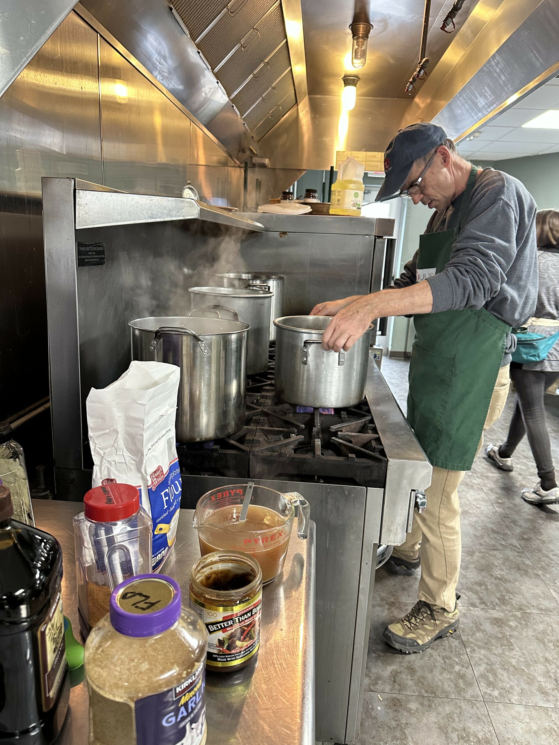 On March 14 the UUS team gathered to make turkey and rice soup, vegetable soup, toasted garlic bread, and a cranberry-walnut salad for lunch. Chopping veggies and whipping up the soups were Juli Statton, Theresa Ullerich, and Kezia Walker-Cecil under the leadership of Frank Wildensee. Carolyn Johnson, Juli Statton, and David Quegg made salads. Gay Mikelson wrapped the silverware and Joy Thompson served beverages. Carolyn Johnson, Sharon Beckman, and Gene McCracken worked the serving line and Caryl Lyons, John Elson, Gare Calhoun, and Gary Lawrenson washed the dishes. This month’s main dish was sponsored by Jeanette Carter- many thanks to Jeanette for that generous gift.