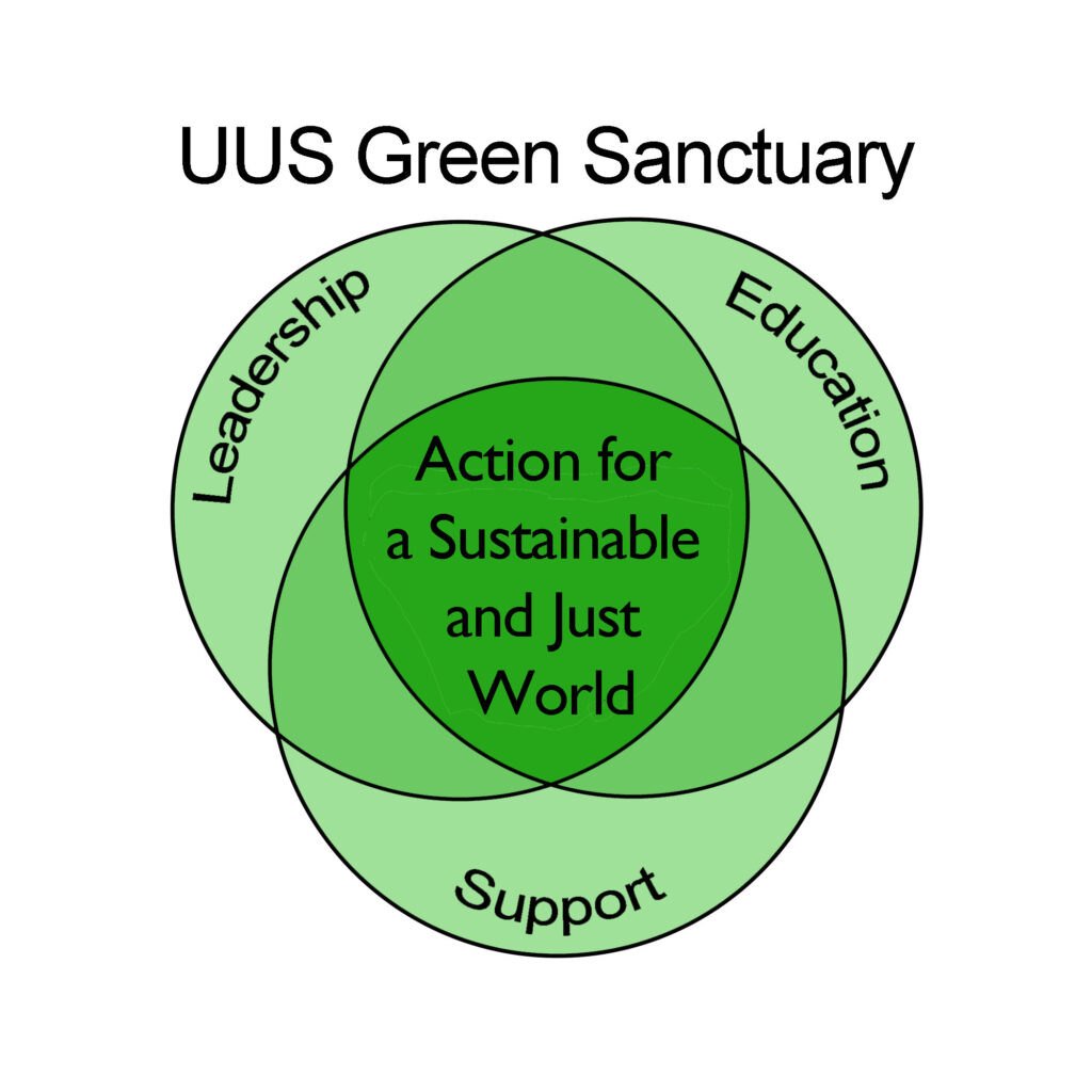 Mission – In meaningful collaboration with the UU Congregation, the Green Sanctuary Team provides leadership, education, support, and action in the following intersectional areas: Congregational Transformation, Mitigation, Adaptation and Resilience, and Environmental and Climate Justice.